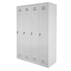 Patikima metalinė rūbų spintelė su raktiniu cilindriniu užraktu, skirta saugiam ir patogiam drabužių bei asmeninių daiktų laikymui sporto, gamybinėse ir kitose bendro naudojimo patalpose.